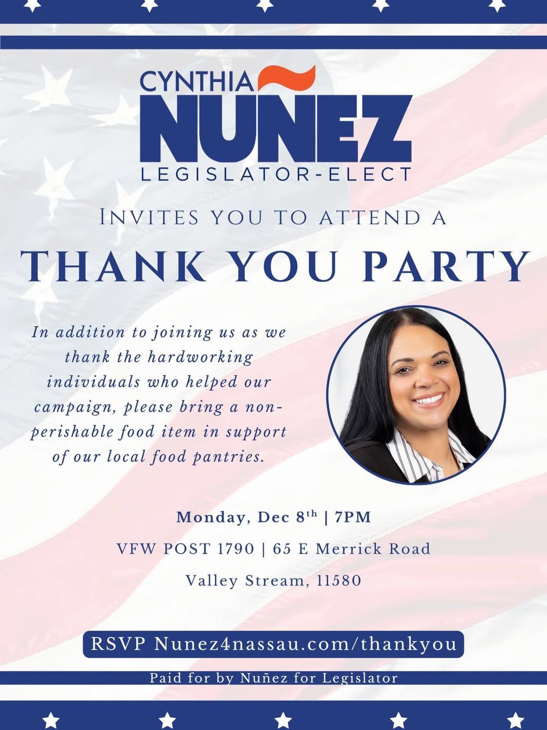We extend our heartfelt congratulations to Cynthia Nuñez on being elected Legislator!