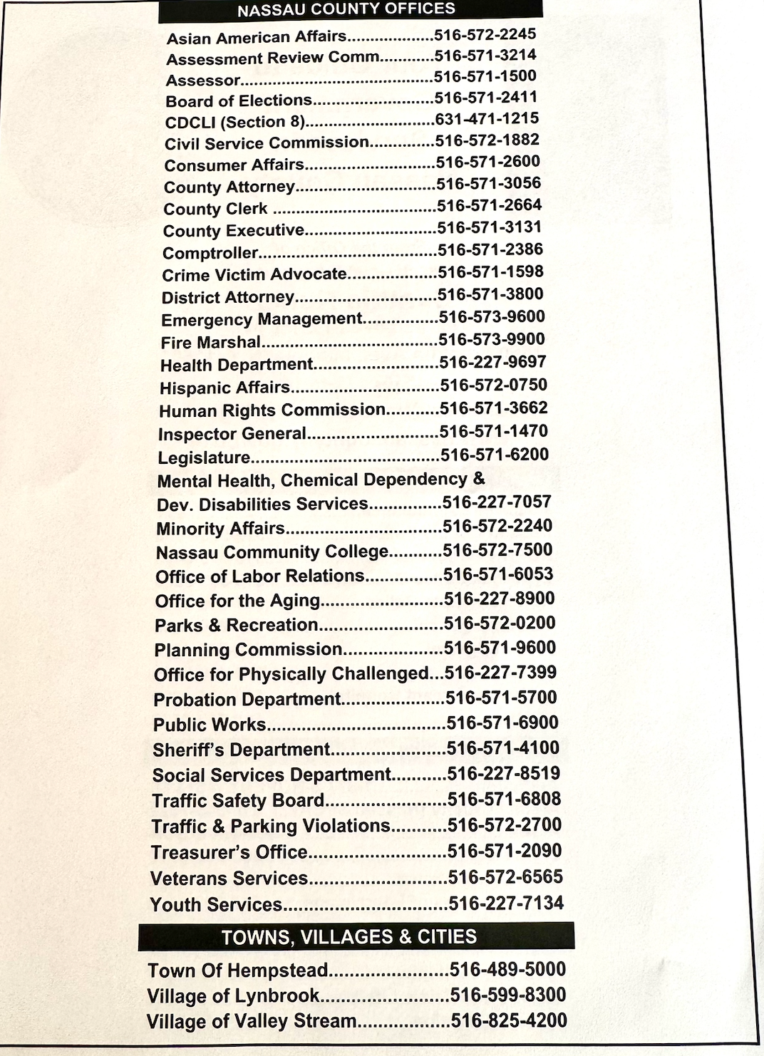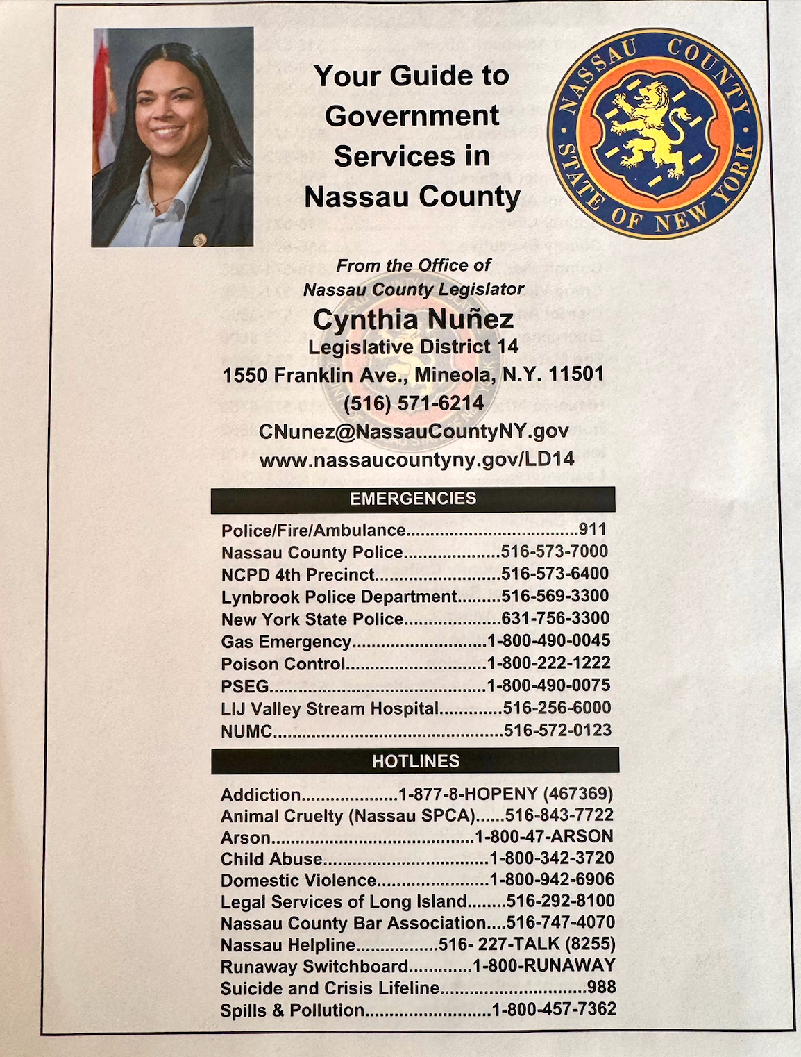 Here is a flyer with the important Government Services in Nassau County