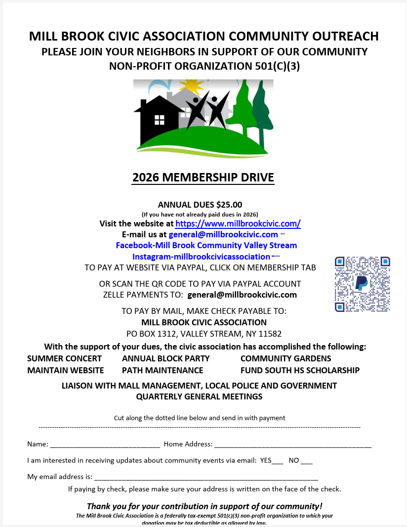 From the Mill Brook Civic Association.